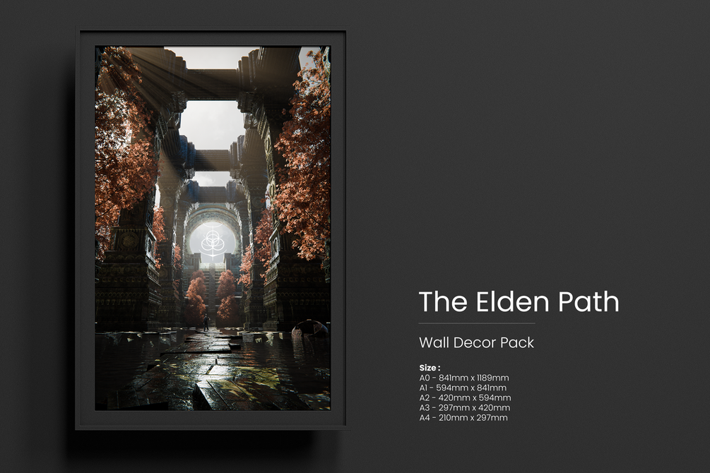 The Elden Path Wall Decor3DRamenArt$1212usdPersonal License$1818usdCommercial License$4040usdExtended License312usdAdd to cartYou'll get a printable artwork in various print sizes at 300 dpi.SizeA0,A1,A2,A3,A4 DPI300Add to wishlist New wishlistShareShare on XShare on Facebook Copy linkCopy product URL
